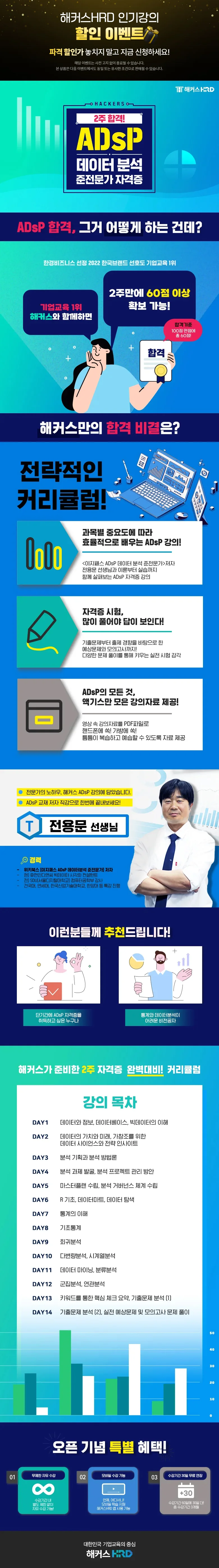 통계와 데이터 분석 개념을 이해할 수 있다. 효율적으로 공부하여 단기간에 ADsP 자격증을 취득할 수 있다. |